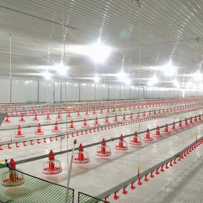 Автоматическая птица полиняла пользу оборудования бройлера для продукции цыпленка мяса и задние бройлеров на земле или полах. Эта система пола поднимая может быть соответствующая для открытого или закрытого дома птицы, низких высоких доходов вклада, включая систему автоматического лотка питаясь, автоматическая выпивая система, система вентиляции.