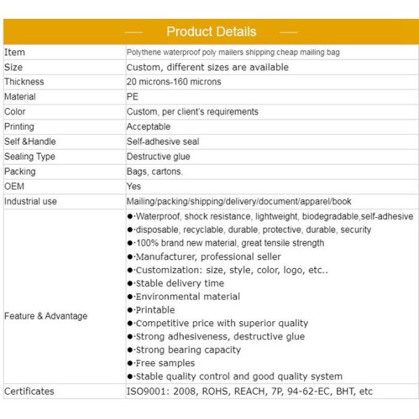 Политен HDPE пересылая сумки, поли доставка отправителя кладет #F в мешки 215x330mm теплостойкое
