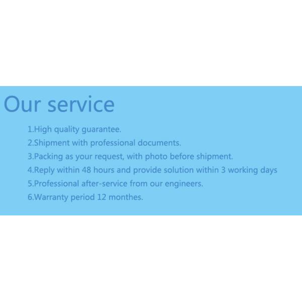 После гарантии, профессиональная команда обслуживания после-продажи обеспечит идеальную службу технической поддержки, и клиент помощи разрешить проблемы столкнулся пока используя наш продукт, регулирует проблемы гостя и жалобы в профессиональном и своевременный.
