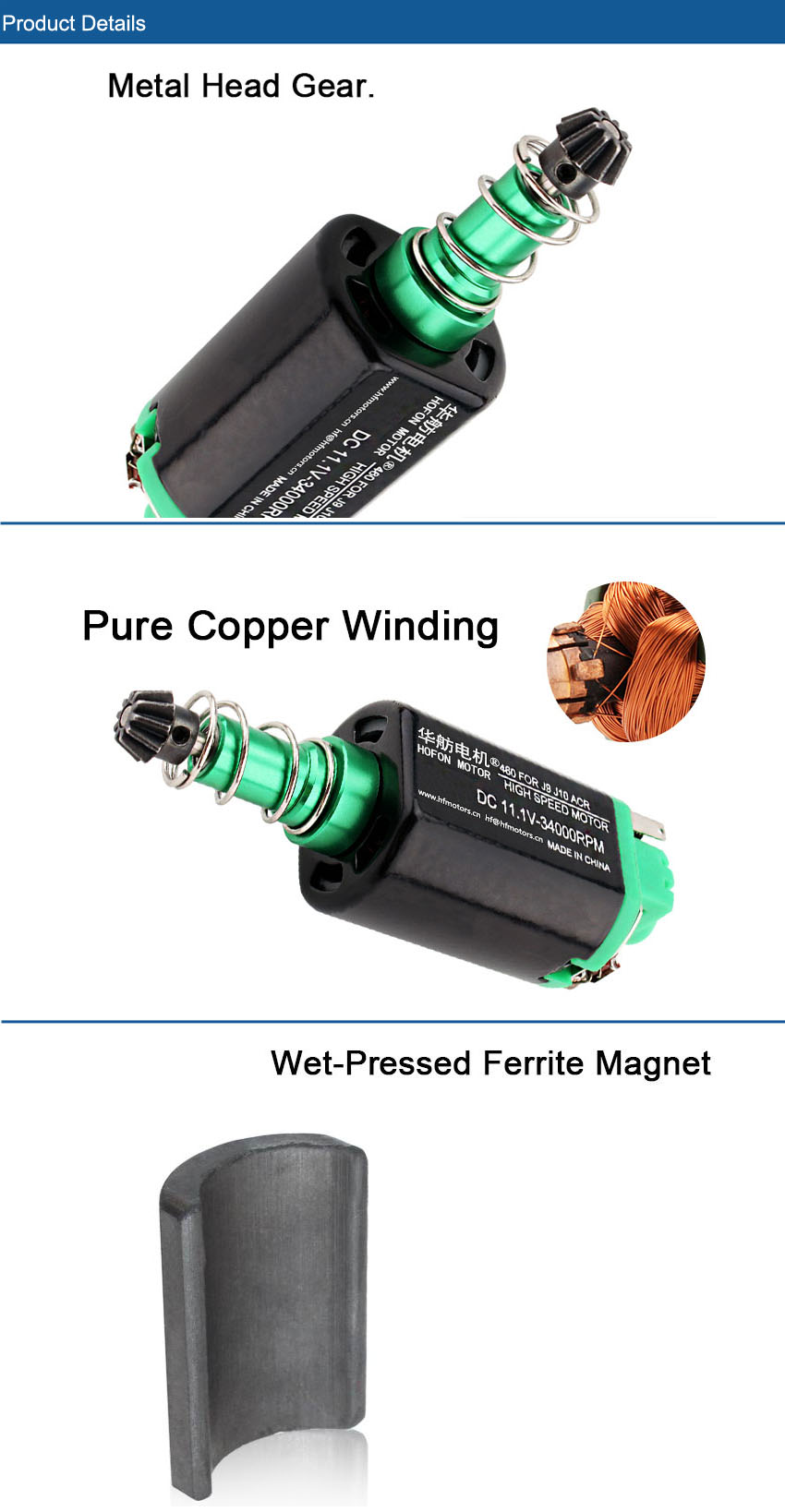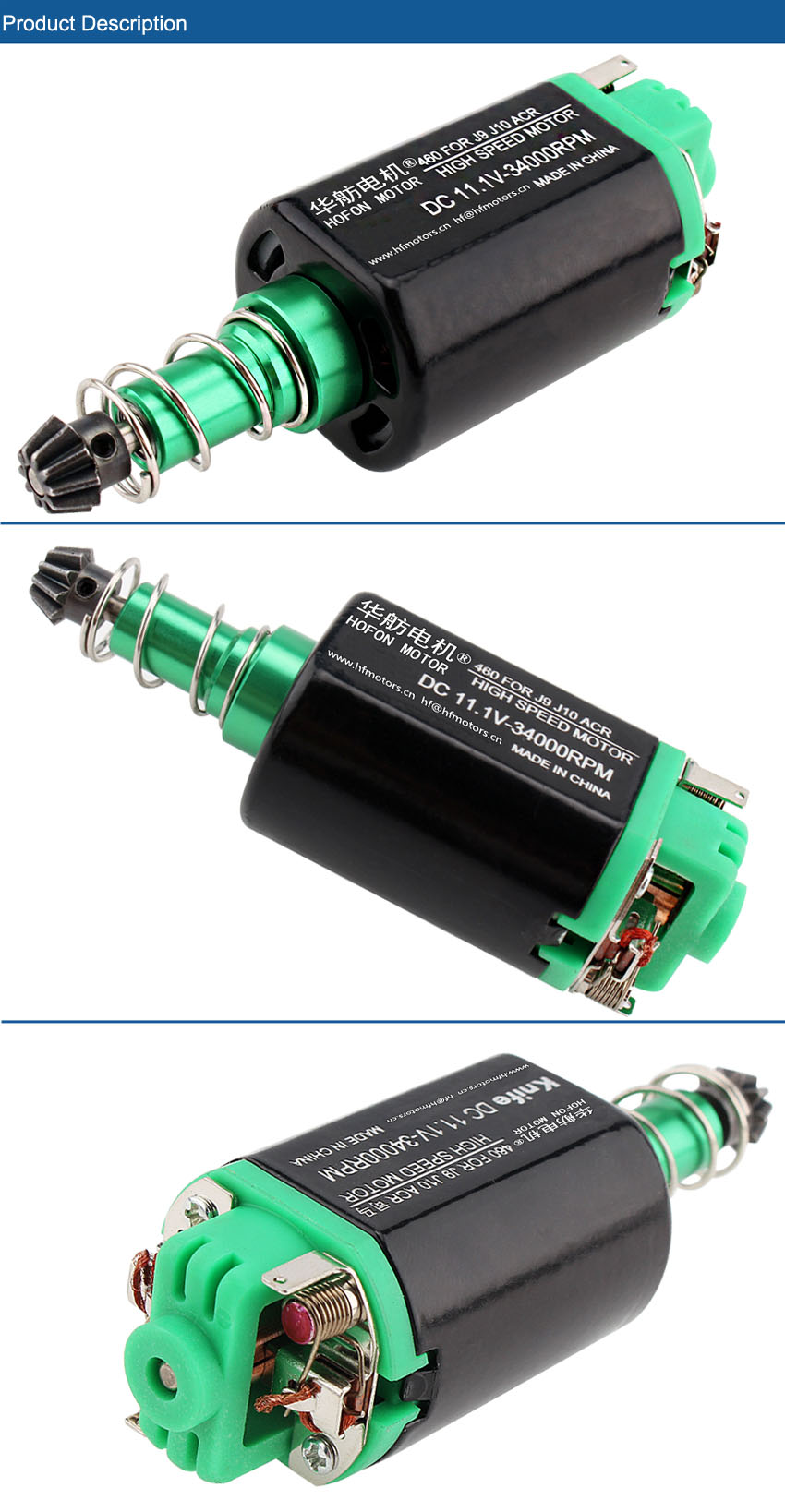 | характеристика 特点 типичная | 1. Теплостойкий, магниты высокой эффективности 2. сильно проводная щетка мотора 3. усиленная цапфа мотора |