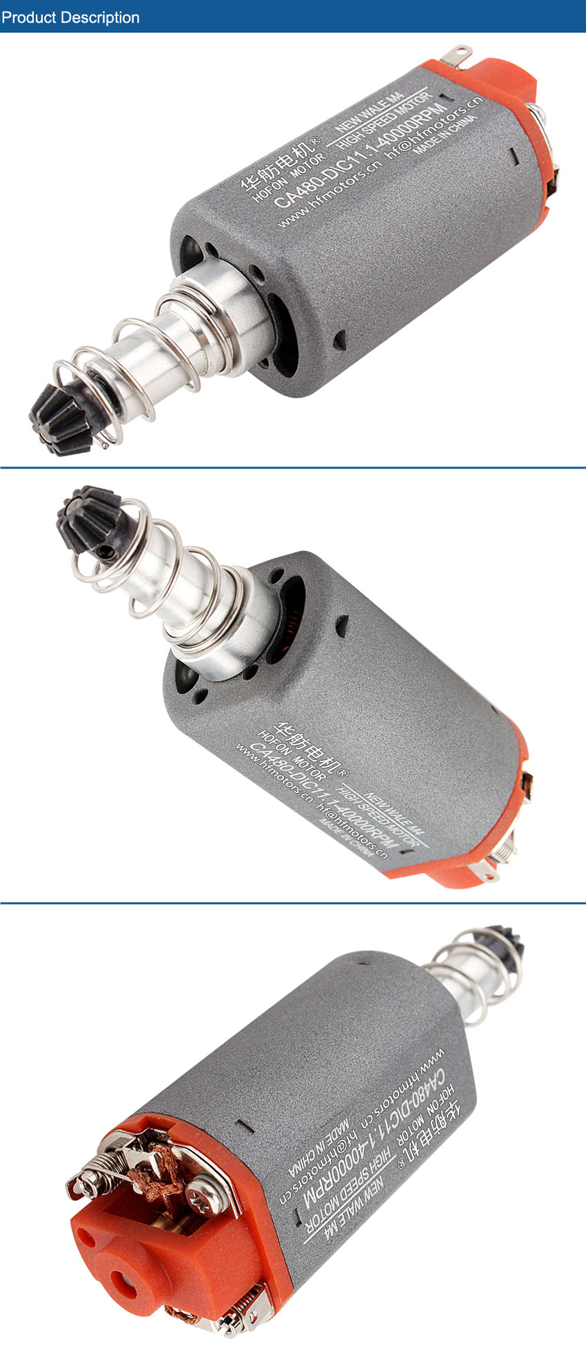 | характеристика 特点 типичная | 1. Теплостойкий, магниты высокой эффективности 2. сильно проводная щетка мотора 3. усиленная цапфа мотора |