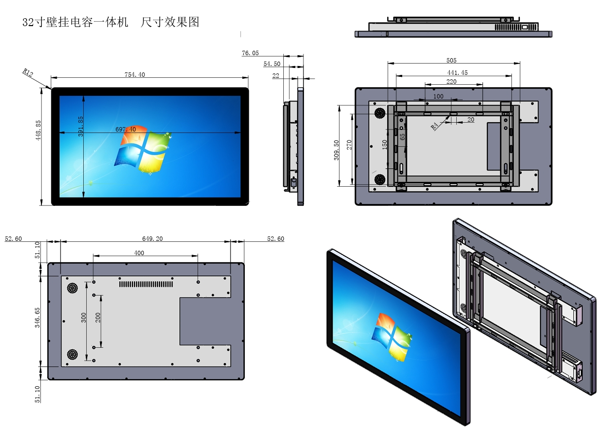 Индустрия 32 дюймовый ЖК-диод All In One Touch Компьютерная поддержка Win11 Linux X86 OS I3 I5 I7 CPU